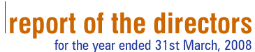 Your Directors have pleasure in presenting the eighty - ninth Annual Report and the Audited Statements of Accounts of the Company for the year ended 31st March, 2008.