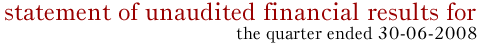 10. The Statutory Auditors of the Company have carried out the limited review of the above unaudited financial results for the quarter ended 30th June, 2008 in terms of Clause 41 of the Listing Agreement.