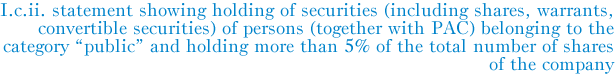 | Sr. No. | Name of the shareholder(s) and the Persons Acting in Concert (PAC) with them | Number of shares | Shares as a percentage of total number of shares {i.e. Grand Total (A)+(B)+(C) indicated in Statement at para (I)(a) above} | |