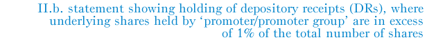 | Sr. No. | Name of the DR Holder | Type of outstanding DR (ADRs, GDRs, SDRs, etc.) | Number of shares underlying outstanding DRs | Shares underlying outstanding DRs as a percentage of total number of shares {I.e., Grand Total (A)+(B)+(C) indicated in Statement at para (I)(a) above} |
